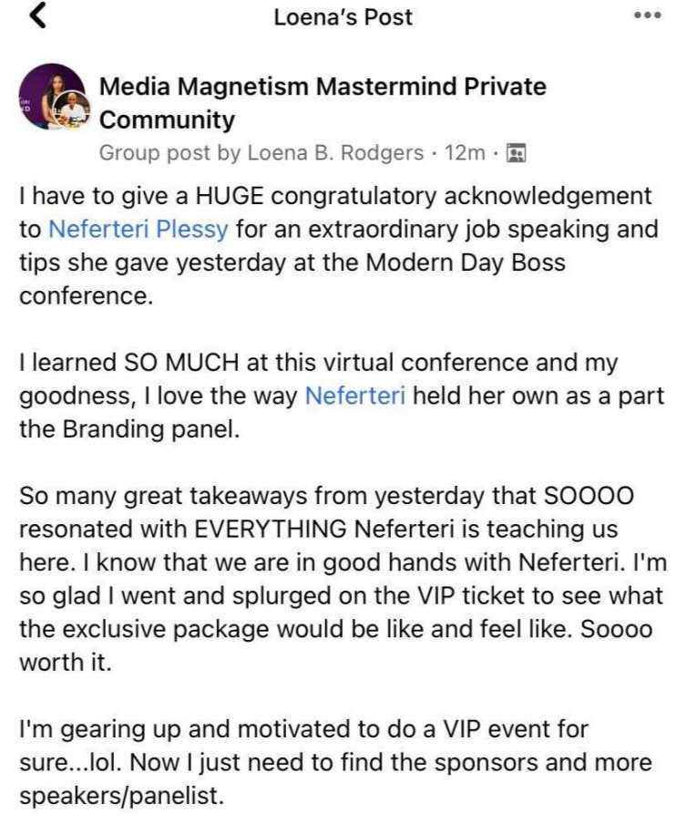 Neferteri Plessy can not and does not make any guarantees about your ability to get results or earn any money, attract media with our ideas, information, tools, or strategies.